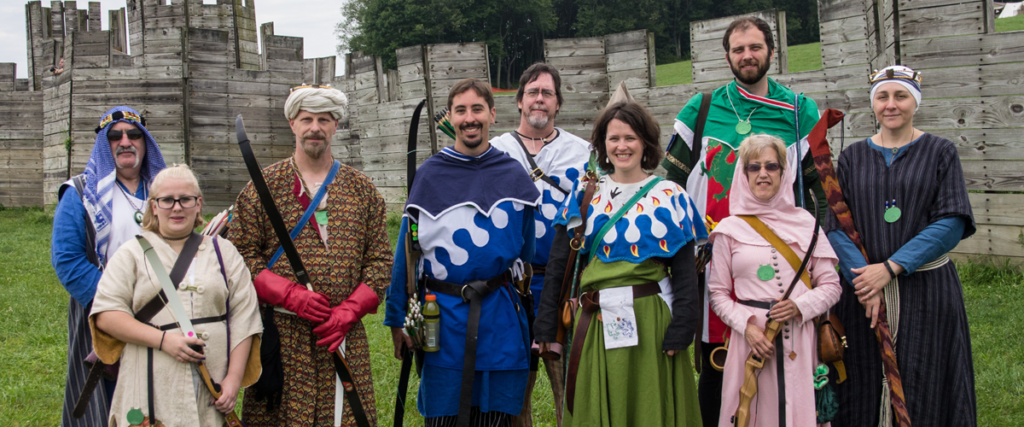 Archery muster participants pictured: Tarmach ben Yehuda al-Khazari, Alora Crispinsdottir, Crispin al-Rumi, Cadfan of Cleftlands, Jared of Coventry, Gwyneth Cole, Muldonny McVriw, Thomasine Greenwell, Gianna Vettori. Photograph by Lord Tarmach ben Yehuda al-Khazari, 2017.