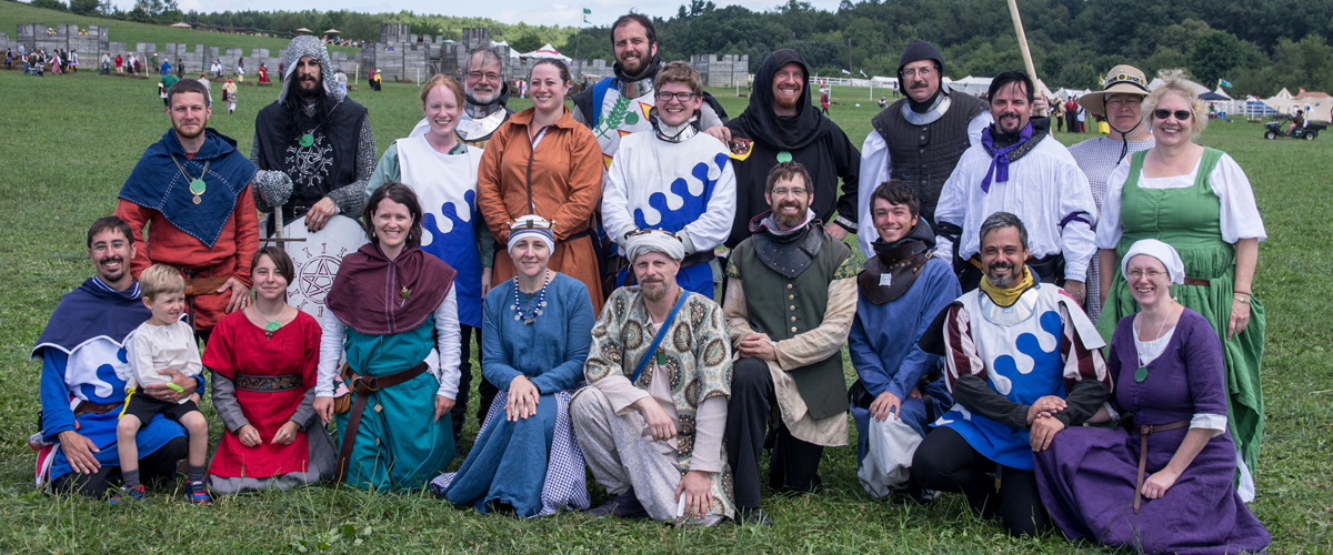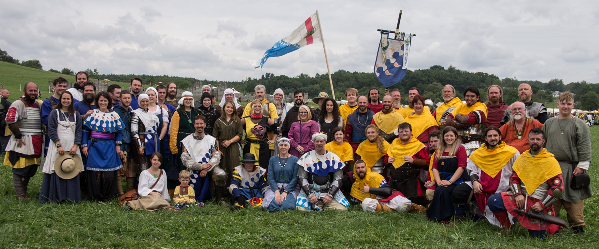 Armored combatants and hospitality corps pictured: (left to right standing) Thorin Eikskjald, Sviatoslav Arturovich, Thora of the Cleftlands, Muldonny McVriw, Artair Mac Neacail, Gwyneth Cole, Matheus Mac Eoin, Meinhard Hammerschmidt, Foulke of Redcliff, Constanza de Mendoza, Claricia de la Mere, Telenok Arturovich, Thorgrim Farþegnson, Robin of Cleftlands, Elinor Rochford, Calum MacDhaibhidh, unknown, unknown, Cebelia de Namaria, unknown, Karl Ulfson, unknown, Alora Crispinsdottir, Angharad ferch Tangwystl, Aslaug, Gunther, Vigfuss Mjoksiglandi, Njall Orkneyjarson, Nazir of Næturauði, Fjällr, Torsten Korta Klinge, Runa Æikibrandskona, Eikbrandr Solgyafi, Tri, Kari Garanhirson,Brendan O Corraidhe, Victorius Suspectus, unknown (left to right kneeling or sitting) Orsina della Luna, Glenn of Cleftlands, Cadfan of Cleftlands, Lazlo of Cleftlands, Gianna Vettori, Crispin al-Rumi, Bláár MacDougall, Jaromír Skjoldhund, Æthelwynn Skerra Dimma, Fergus MacManus, Brynjolf, Svana, Rollo Eldström, Ulfr Forkbeard. Photograph by Lord Tarmach ben Yehuda al-Khazari, 2017.