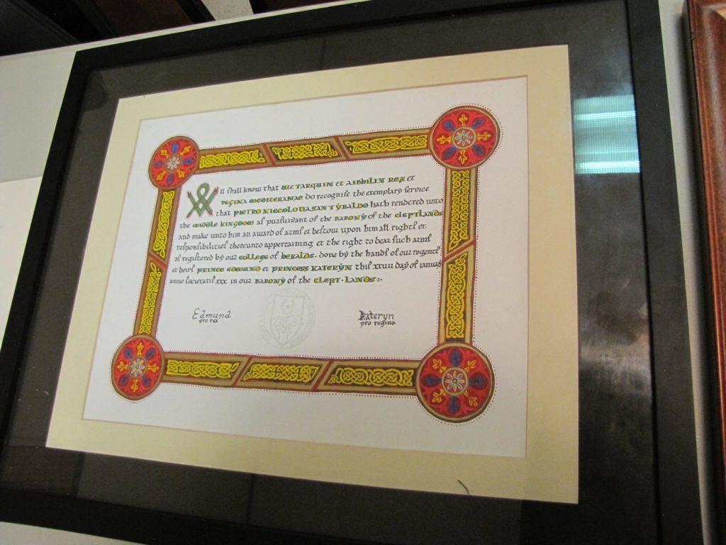 scroll13 Full size 2048 × 1536 pixels Cleftlands Scribal Display Award of Arms for Pietro Nicolo da San Tebaldo Previous image Next image