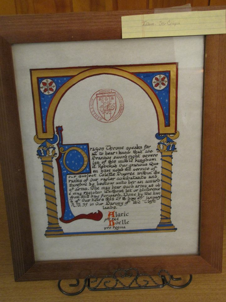 Award of Arms for Colette Du Pre