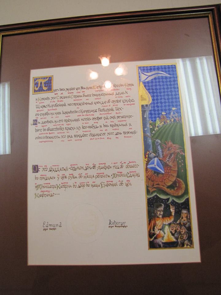 scroll21 Full size 720 × 960 pixels Cleftlands Scribal Display Award of Arms for Tarmach ben Yehuda al-Khazari Previous image Next image