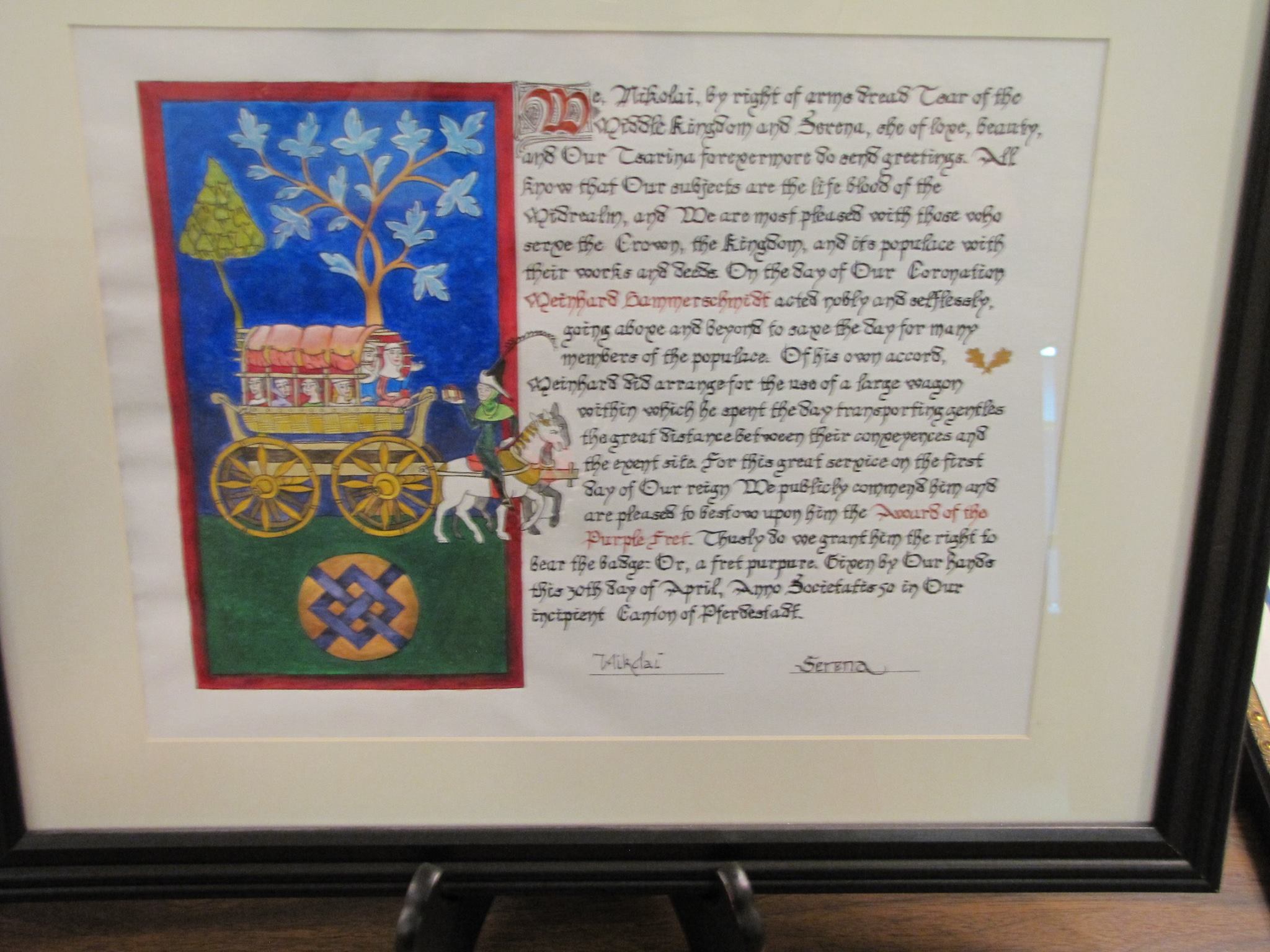 scroll9 Full size 2048 × 1536 pixels Cleftlands Scribal Display Award of the Purple Fret for Meinhard Hammerschmidt Previous image Next image